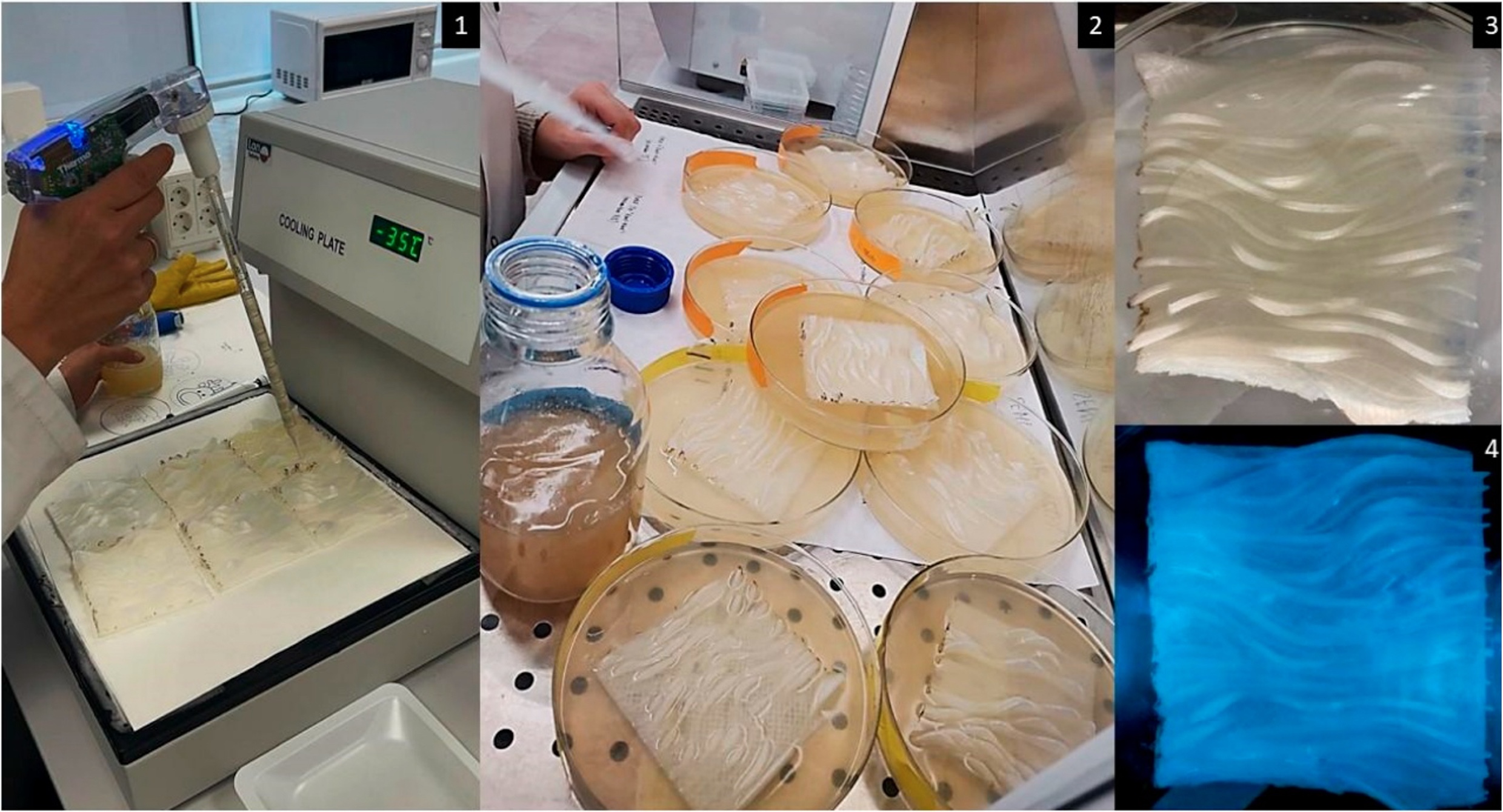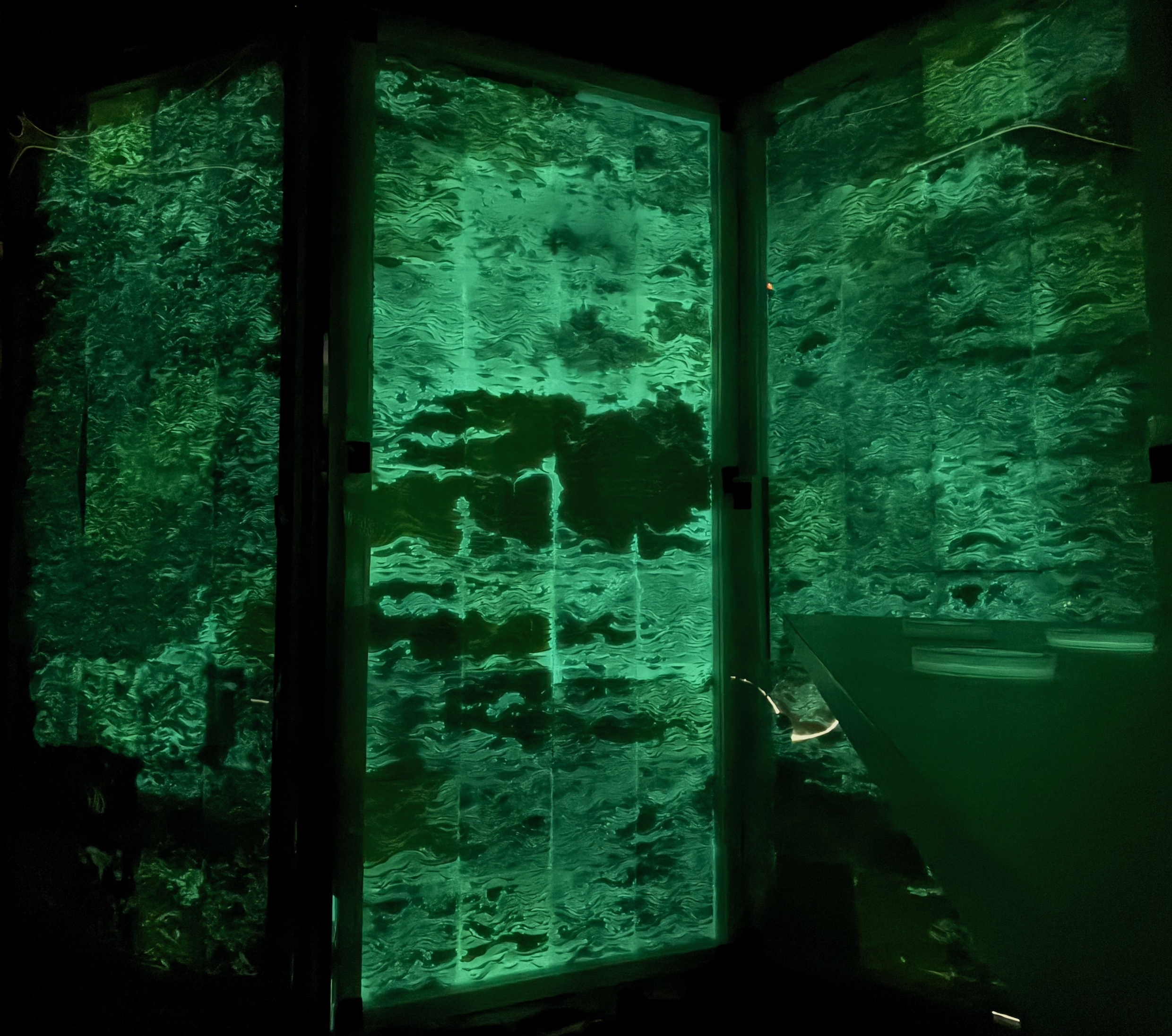 Damit das biologische Licht tatsächlich an Gebäuden und in Innenräumen eingesetzt werden kann, entwickelte das Team biorezeptive Paneele. Diese werden mit transparentem Material im 3D-Druckverfahren hergestellt und besitzen eine fein strukturierte Oberfläche, die den Bakterien optimalen Halt und Nährstoffversorgung bietet.